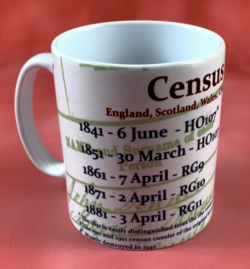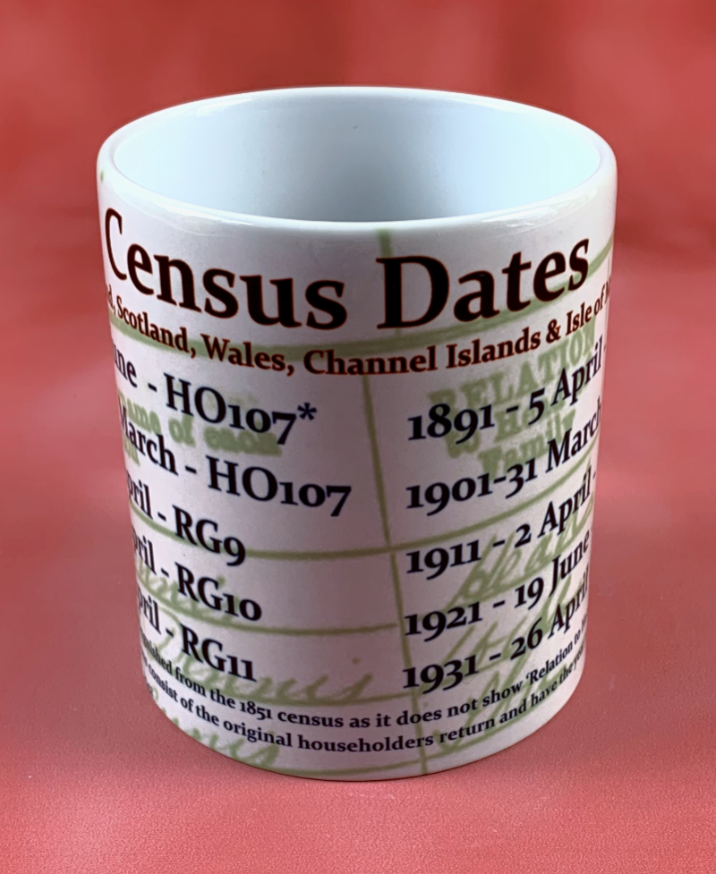 This mug is the perfect gift for your favourite genealogist.Another mug design which helps you quickly see census dates at a glance. Durham finish
