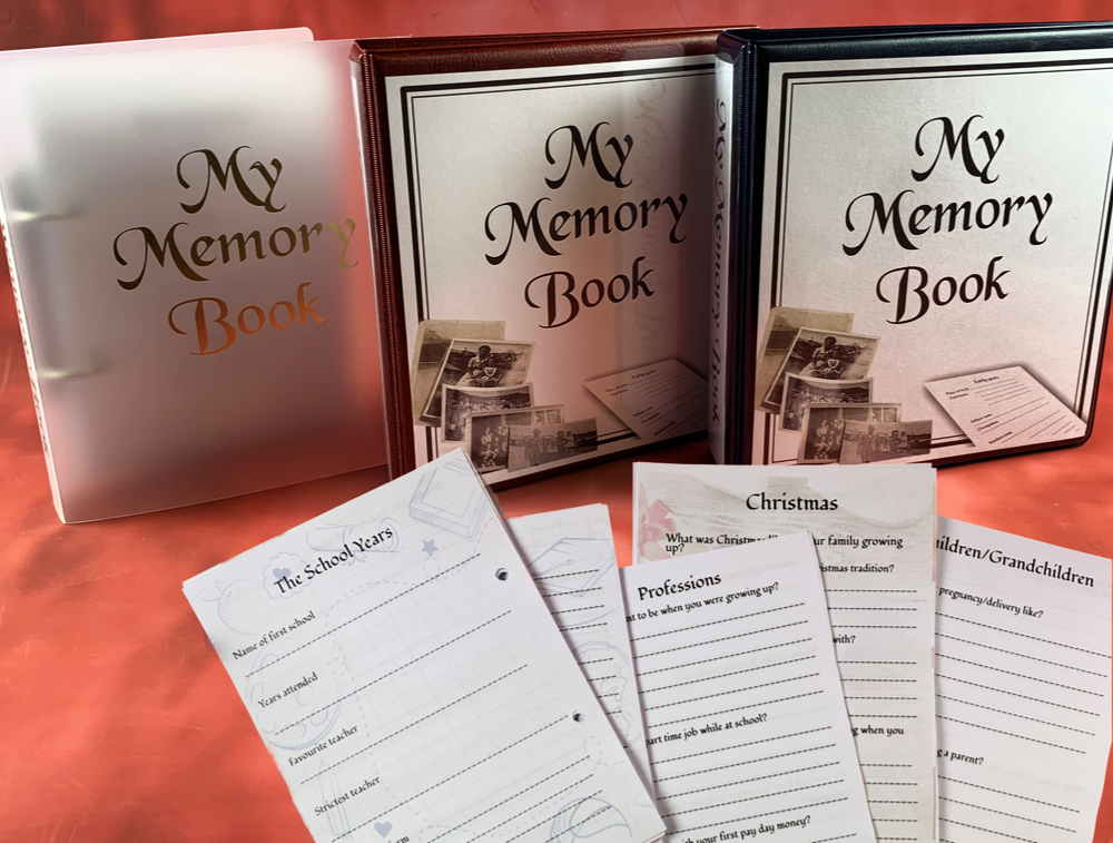 The book is supplied in either an A5 A durable polypropylene binder featuring the words "My Memory Book" in gold foil on the front cover.