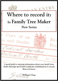 Specially written for My History this is a quick guide to entering information into the new Family Tree Maker (versions 2008 onwards) about your family from Birth, Marriage and Death certificates including how to record them as sources. There is also a page explaining how to add images of certificates to sources.